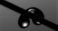 Pierre-Brice a alors découvert que le fait de chauffer le fil n’avait aucune influence, mais qu’en revanche, le casque n’apparaissait que si le fil était préalablement mouillé. Un autre stagiaire, Philippe Bourrianne, a ainsi établi que le casque n’apparaît que pour une certaine gamme de quantité de liquide déjà présente sur le fil. Cependant, l’explication de ce phénomène n’est pas encore bien comprise. Elle pourrait être liée au film d’air qui est piégé entre la goutte et le film de liquide accroché au fil. Mais la question est encore ouverte… Pierre-Brice a également constaté que si l’on faisait tomber la goutte sur le fil de manière un peu décentrée, il se produisait un phénomène de rebond tout à fait intéressant !