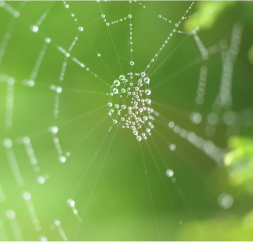 - De la rosée sur une toile d’araignée : encore un exemple tiré de la Nature où les recherches de Pierre-Brice pourraient bien trouver des applications