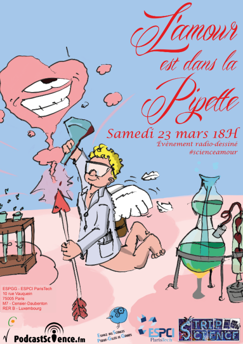 Retrouvez les chroniqueurs passionnés de Podcast Science et les talentueux dessinateurs de Strip Science à l’ESPGG pour la deuxième soirée radio-dessinée, autour de la chimie de l’amour !